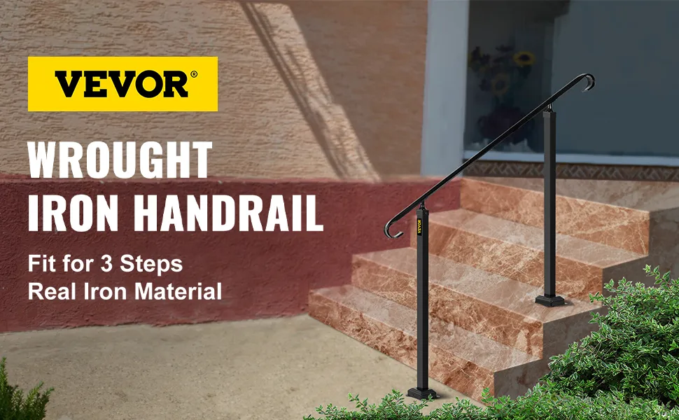 Como una gran ayuda para que los miembros de su familia suban y bajen las escaleras, este pasamanos de hierro forjado se adapta a 3 escalones. Abarca un máximo de 3 contrahuellas y mide 42,7"/108,5 cm poste a poste.