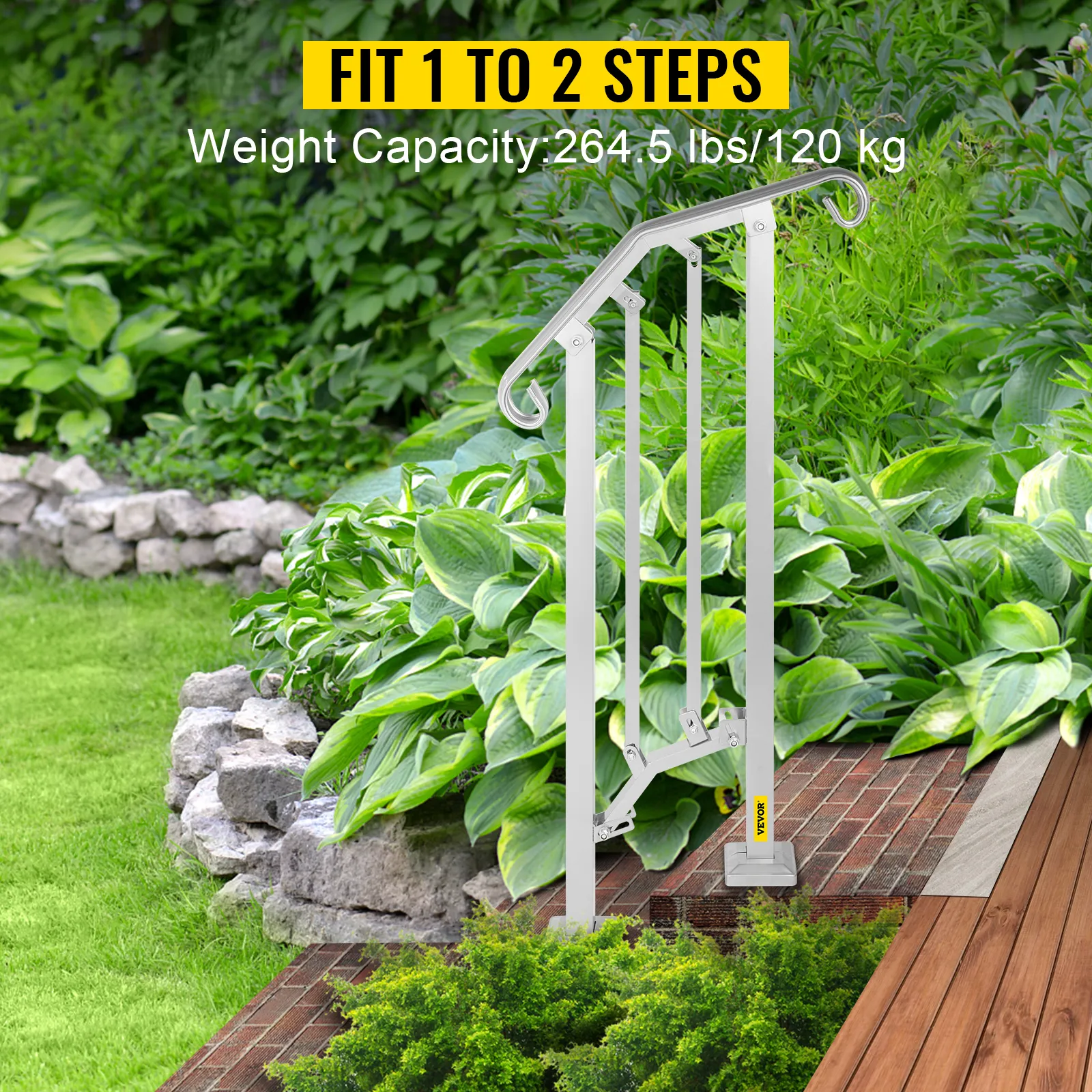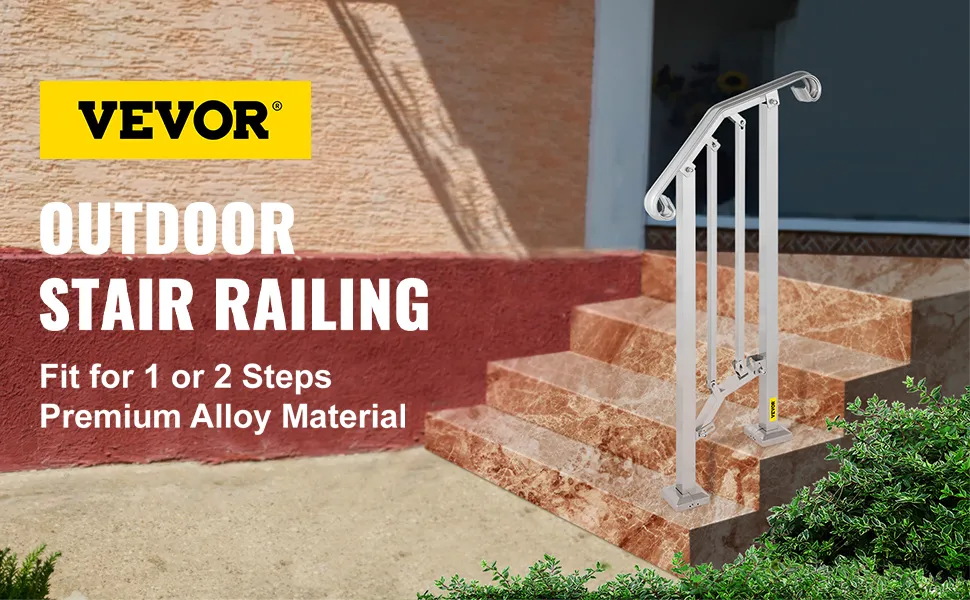 Como gran ayuda para que los miembros de su familia suban y bajen escaleras, esta barandilla de escalera exterior se adapta a 1 o 2 escalones. Es ideal para lugares donde no se puede fijar a una pared o estructura.