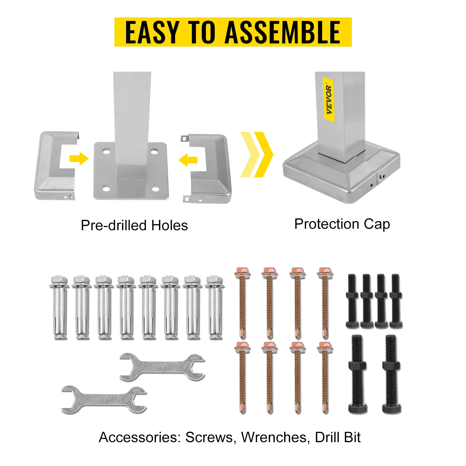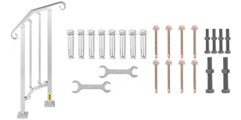 El kit de barandillas para escaleras exteriores incluye todo lo necesario para fijar las barandillas y los postes a las escaleras. Es sencillo de instalar y completar el montaje en unos minutos.