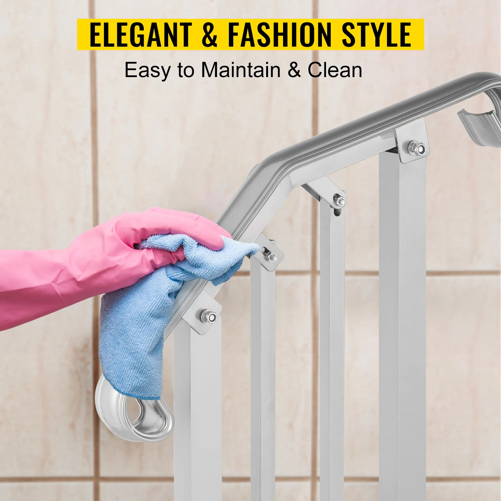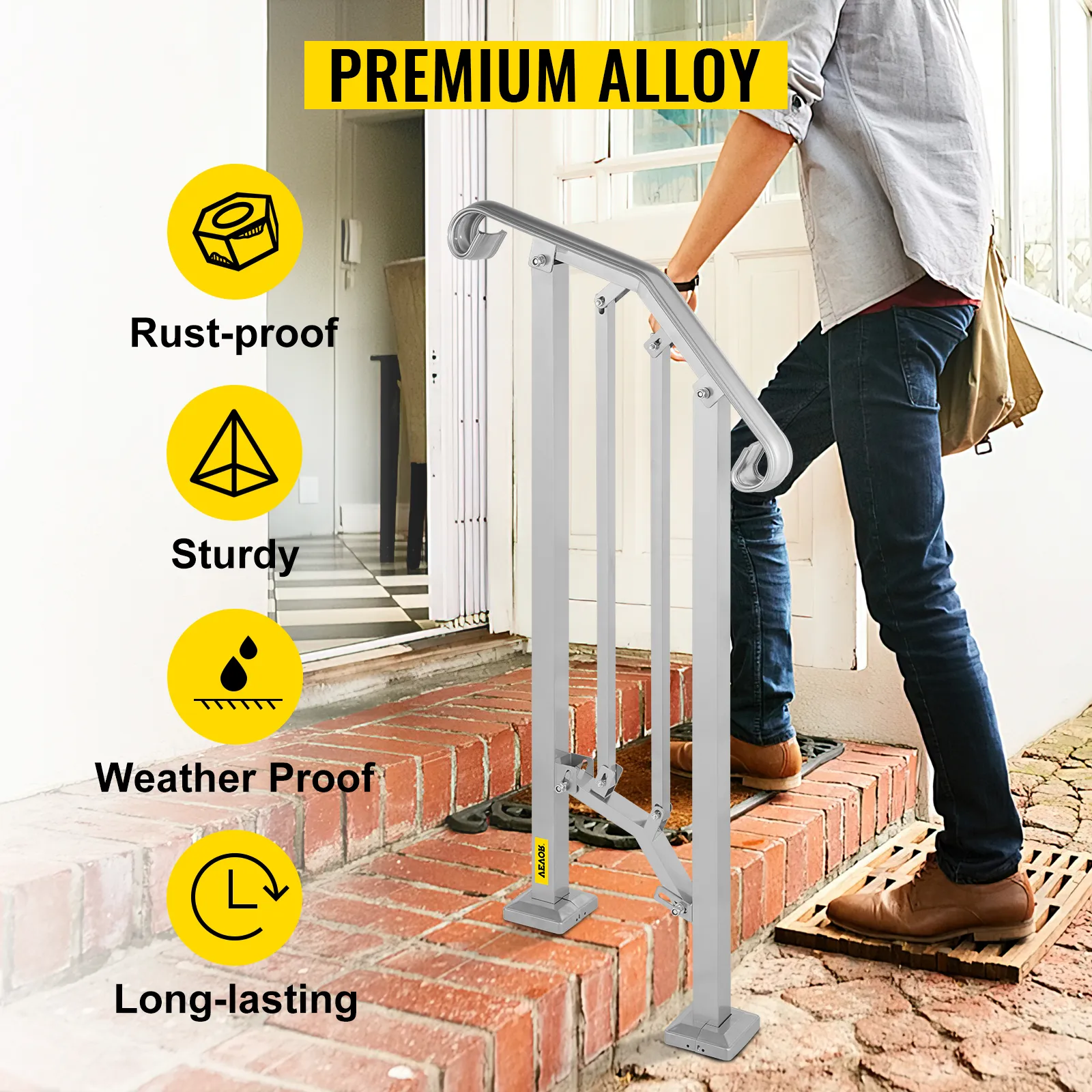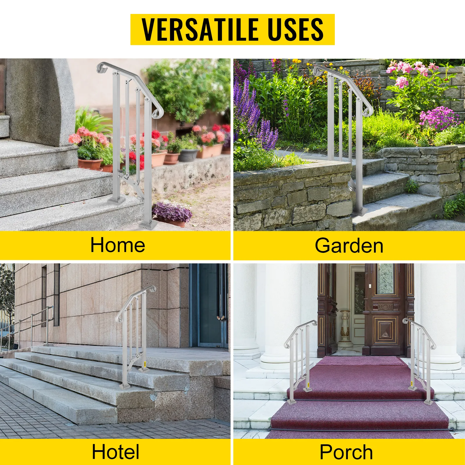 Nuestro pasamanos para escalones brinda protección adicional para personas mayores, niños y discapacitados que tienen dificultades para usar las escaleras. La altura flexible permite que el pasamanos exterior para escalones se ajuste a 1 o 2 escaleras, satisfaciendo sus diferentes necesidades. Con material de aleación de primera calidad y superficie con recubrimiento en polvo, la barandilla es resistente al óxido y fácil de limpiar. Este pasamanos metálico para escalones de exterior es ideal para jardines, edificios residenciales, porches, hoteles, etc.