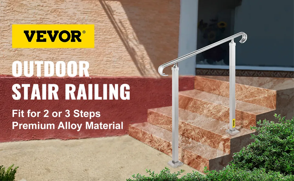 Como gran ayuda para que los miembros de su familia suban y bajen escaleras, esta barandilla de escalera exterior tiene capacidad para 2 o 3 escalones. Es ideal para lugares donde no se puede fijar a una pared o estructura.