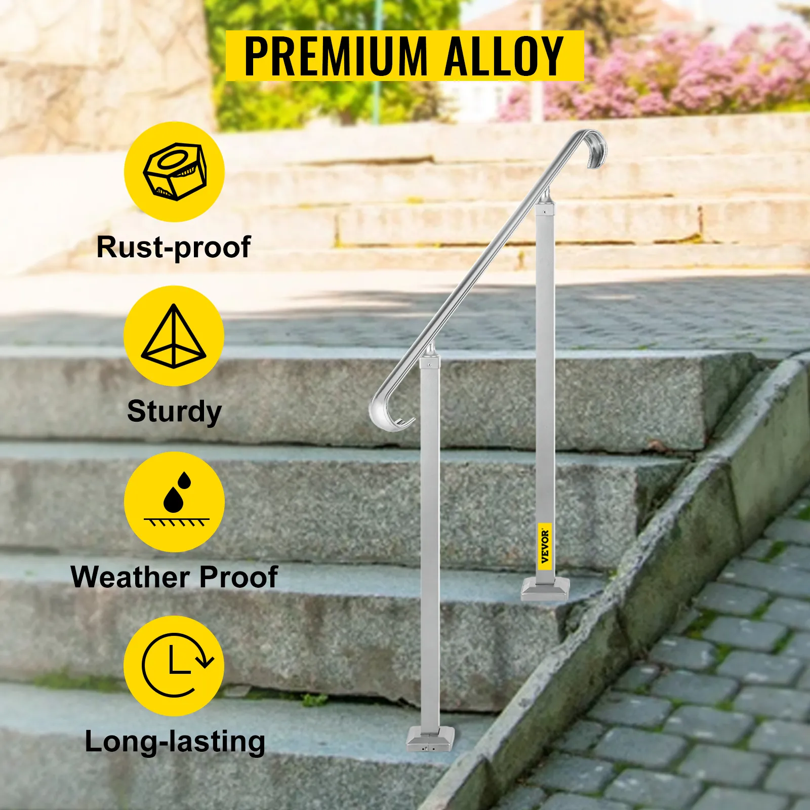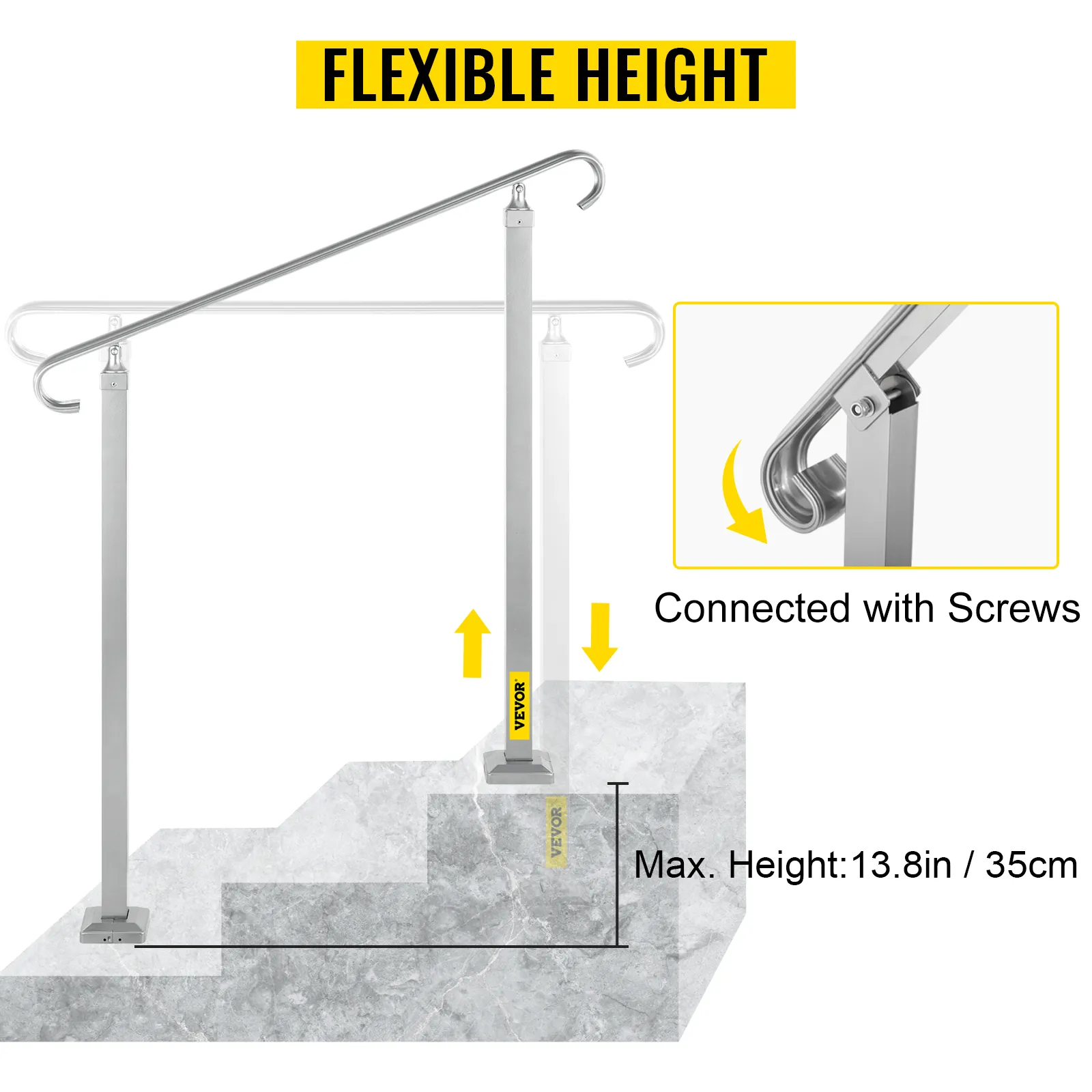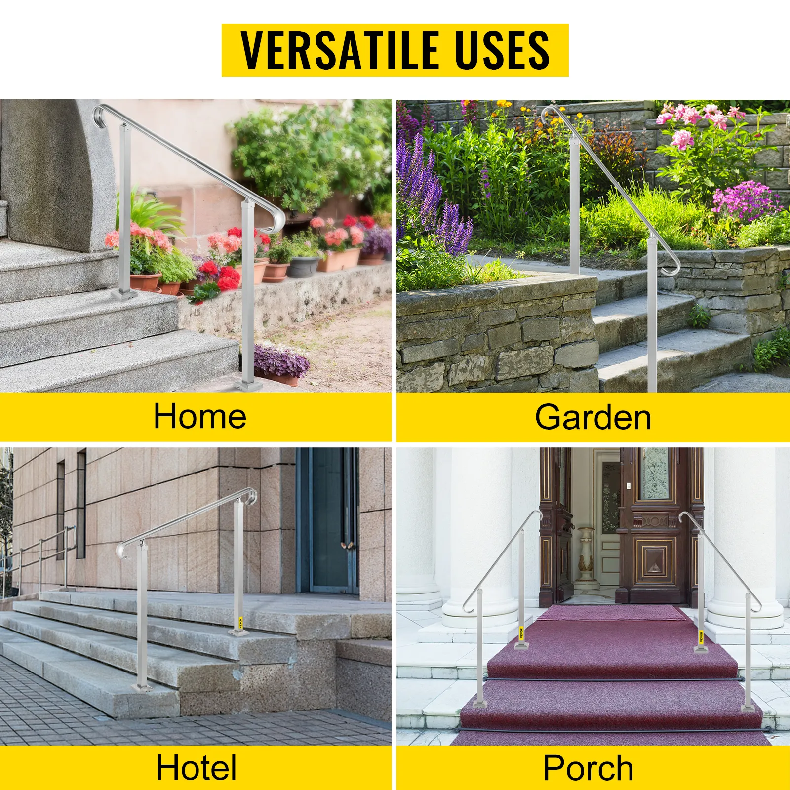 Nuestro pasamanos para escalones brinda protección adicional para personas mayores, niños y discapacitados que tienen dificultades para usar las escaleras. La altura flexible permite que el pasamano exterior para escalones se ajuste a 2 o 3 escaleras, satisfaciendo sus diferentes necesidades. Con material de aleación de primera calidad y superficie con recubrimiento en polvo, la barandilla es resistente al óxido y fácil de limpiar. Este pasamanos metálico para escalones de exterior es ideal para jardines, edificios residenciales, porches, hoteles, etc.
