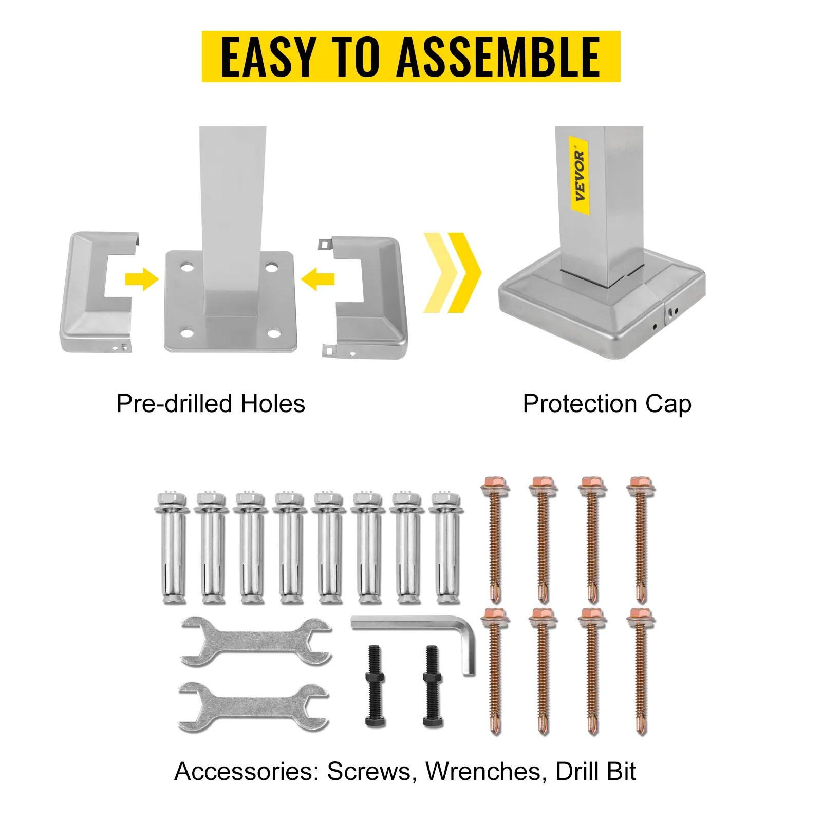 El kit de barandillas para escaleras exteriores incluye todo lo necesario para fijar las barandillas y los postes a las escaleras. Es sencillo de instalar y completar el montaje en unos minutos.