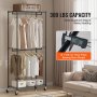 VEVOR Perchero para Ropa de Servicio Pesado, Barras Colgantes Dobles Perchero para Ropa con Nivel de Almacenamiento Inferior y Superior, Perchero para Ropa con Ruedas para Colgar Ropa, Tubo de Acero Espesor de 1'' de Diámetro Soporta hasta 300Lbs