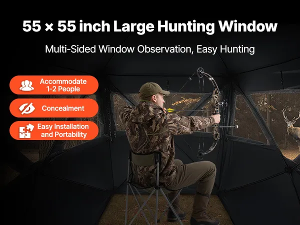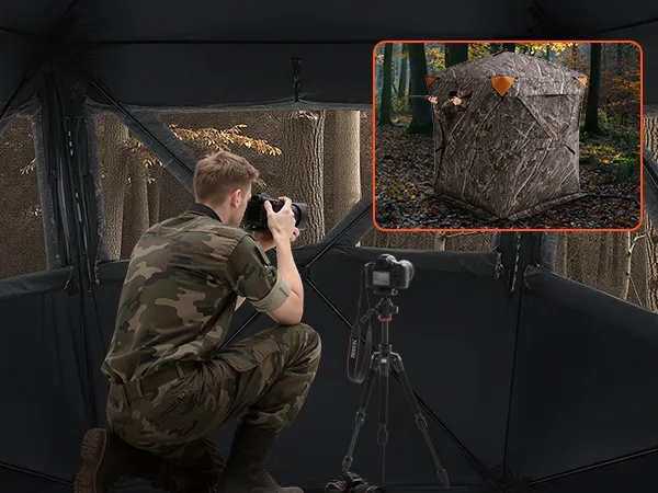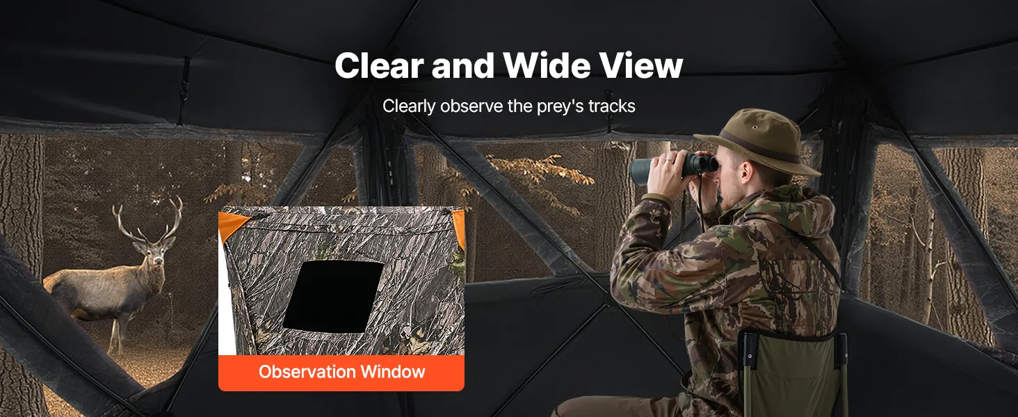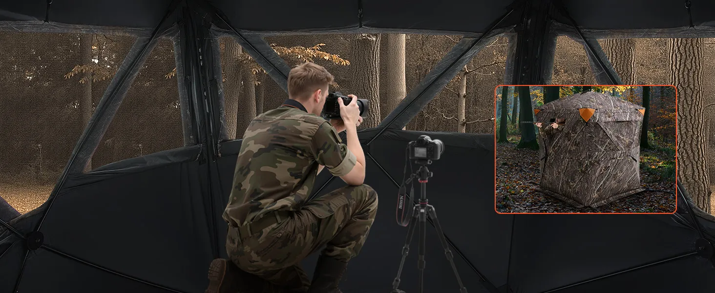 Nuestras persianas de caza cuentan con diseños de visualización de múltiples ventanas y múltiples ángulos, que brindan una vista sin obstáculos, lo que le permite observar fácilmente a los animales y tomar fotografías precisas.