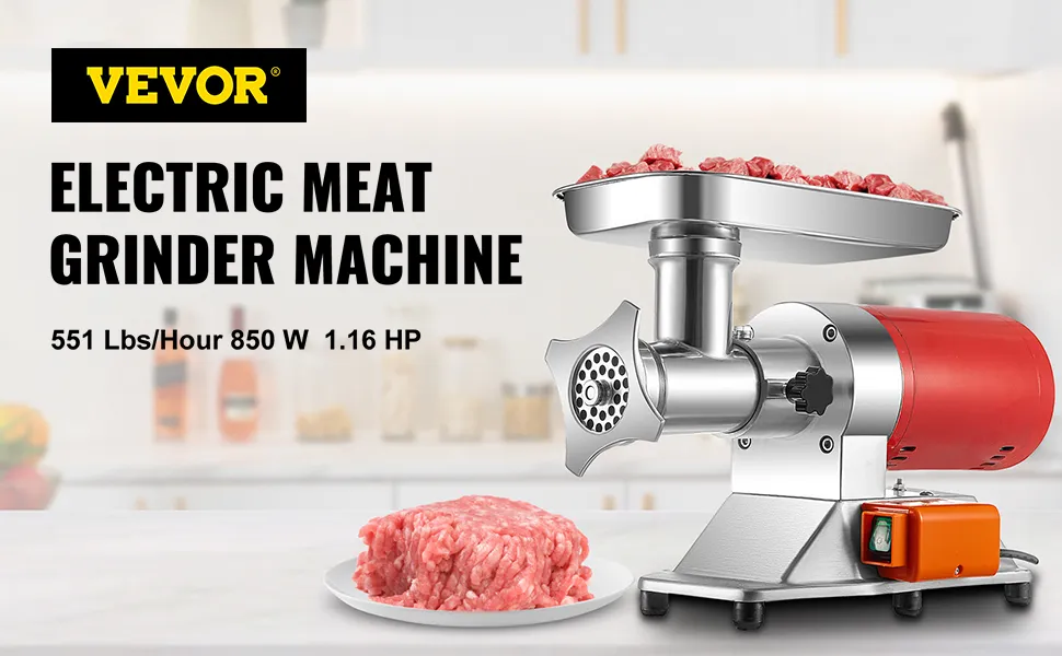 Con un motor de alta potencia de 850 W y una velocidad de rotación de 180 r/min, la capacidad de molienda puede alcanzar hasta 551 lb de carne por hora, lo que mejora significativamente la eficiencia de molienda de carne.
