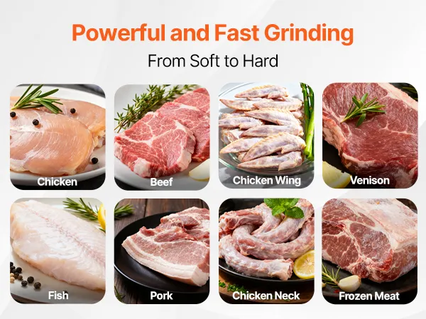 Robust Construction: The entire machine is made of stainless steel, with sharp SUS420 blades that are durable and capable of grinding chicken cartilage, frozen meat, and more.