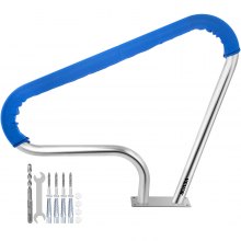 Barandilla de piscina VEVOR de 55 x 32 pulgadas, de acero inoxidable 304, con capacidad de carga de 250 lb, color plateado, resistente a la corrosión, con cubierta de agarre azul, broca M8 y tornillos autorroscantes.