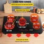 Hay 9 niveles de calefacción ajustables que controlan con precisión la temperatura de 212 ℉ a 1112 ℉ . Los controladores de quemadores separados le permiten operar uno o varios quemadores de acuerdo con las diferentes demandas. Con la función de temporizador, puede configurar fácilmente el tiempo de calentamiento hasta 99 minutos. El bloqueo de seguridad puede evitar su toque equivocado.