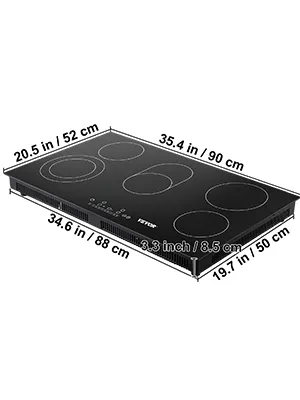 El tamaño de corte de nuestra estufa eléctrica es de 34,6 x 19,7 pulgadas. Con el diseño integrado, es fácil para usted instalar esta estufa en su cocina y también ahorra mucho espacio para cocinar.