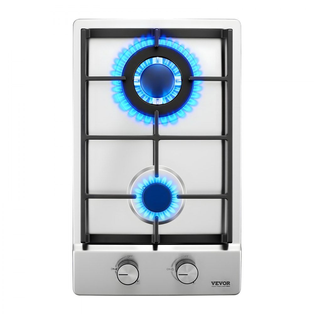 Cocina a gas VEVOR de 12 pulgadas, máx. 12250 BTU, 2 quemadores integrados de acero inoxidable, placa de gas natural convertible a GLP/GN con protección de termopar para exteriores, cocina, camping y autocaravanas.