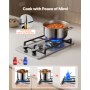 La estufa de gas VEVOR 12250BTU tiene 2 quemadores de alta potencia que pueden funcionar simultáneamente, ofreciendo una amplia gama de opciones de cocción. Ya sea asar filetes, cocinar sopas a fuego lento, cocinar fideos o cocinar verduras al vapor, esta estufa puede manejarlo todo fácilmente.