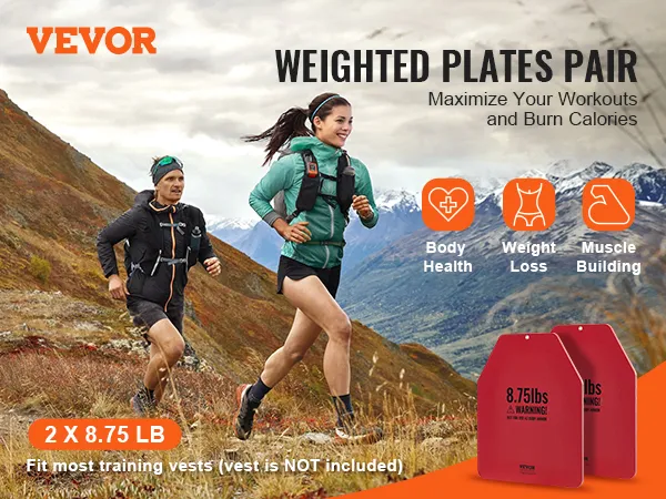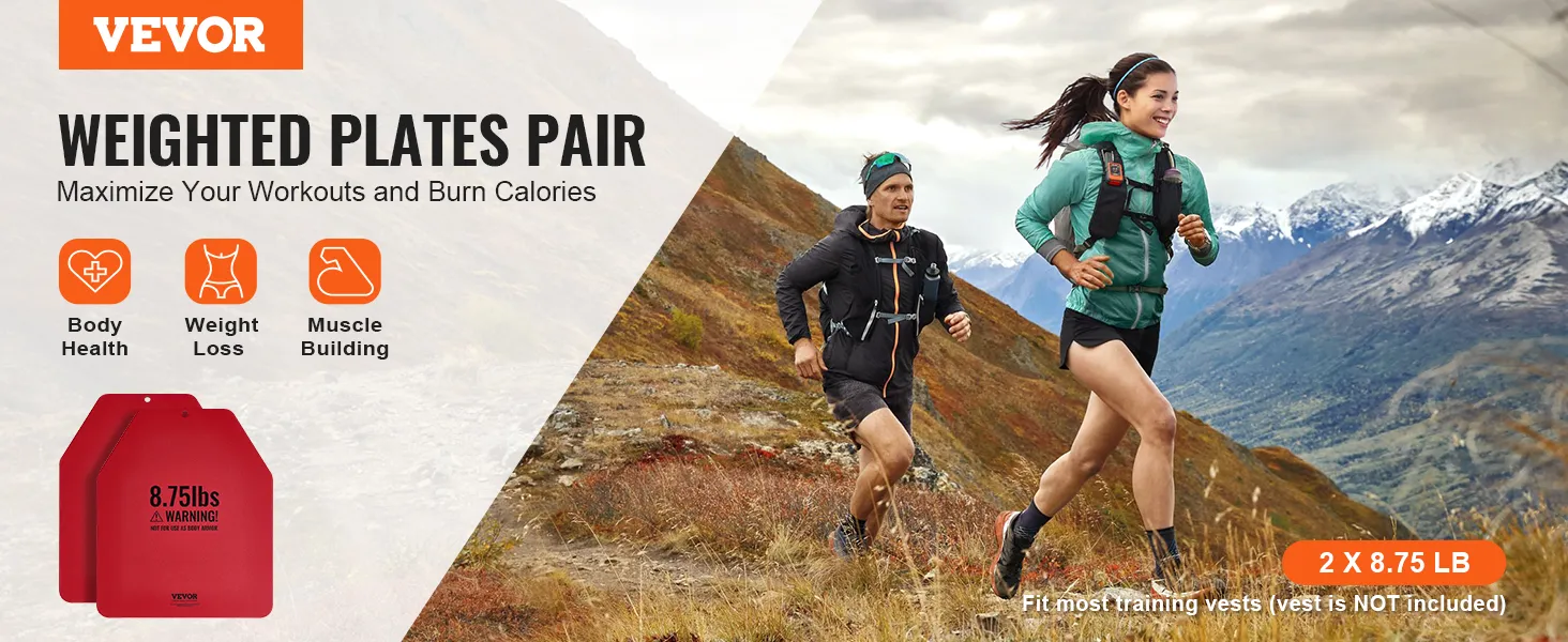 Placas lastradas VEVOR para chalecos, pares de 8.75 lb, placas lastradas de acero premium, ajuste ergonómico contorneado para WODs, peso adicional para chalecos lastrados, para entrenamiento de fuerza, running, fitness y entrenamientos intensos.