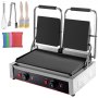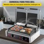 - Esta prensa para panini comercial con carcasa exterior de acero inoxidable y parrilla de hierro fundido es perfecta para cocinar varios alimentos, como sándwiches Panini, bistecs, carne, huevos revueltos, etc. Las placas planas dobles paralelas facilitan el calentamiento uniforme, sin voltear los alimentos. La temperatura es de 50-300 ℃ (122-572 ℉) ajustable. ¡Es perfecto para uso comercial!