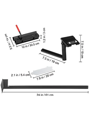 Dimensión estándar: el kit completo incluye bases estándar, brazo en V y plataforma. (El brazo en V mide 24"/61 cm de largo y la plataforma mide 3" x 5" x 1/4" de grosor). Dimensiones precisas para acomodar más barras mecanizables.