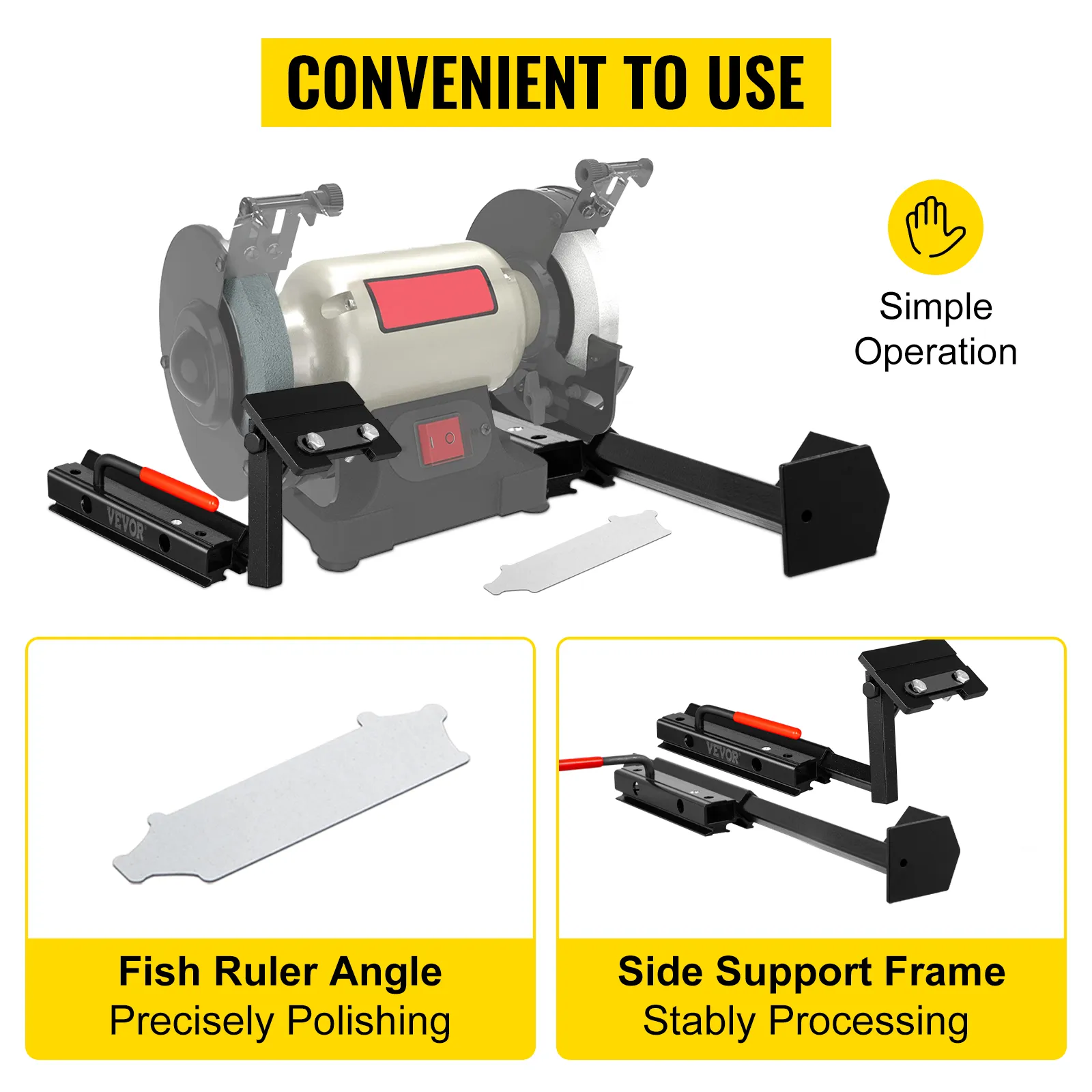 Componente completo: el kit completo incluye un juego de 5 piezas: una regla de tablero de pescado, dos bases de soporte para moler cuchillos y dos soportes laterales. Al montar uno debajo de cada rueda, las operaciones de esmerilado se pueden realizar rápidamente en cualquier lado de su esmeril sin tener que volver a colocar las bases.