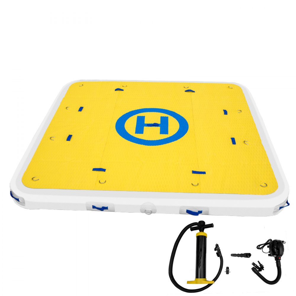 La plataforma flotante inflable está construida con material de PVC de punto de caída en capas, resistente y resistente al envejecimiento. El muelle flotante cuenta con una capacidad de peso máxima de 772 libras, con capacidad para 3-4 adultos. Además, hay una almohadilla antideslizante de EVA en la superficie y manijas de agarre y anillos en D para mayor estabilidad y seguridad. El muelle de natación tiene una bomba de aire eléctrica y una bomba manual para un inflado rápido. Es ideal para aquellos amantes del agua que disfrutan tomando el sol, nadando, buceando, etc.