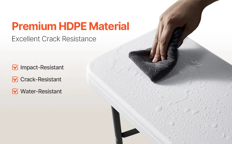 Banco plegable de plástico VEVOR, portátil de 1,8 m para interior/exterior, picnic, fiesta, patio, camping, comedor, asiento plegable de HDPE liso para jardín, fútbol, actividades multiusos, 1 paquete, blanco