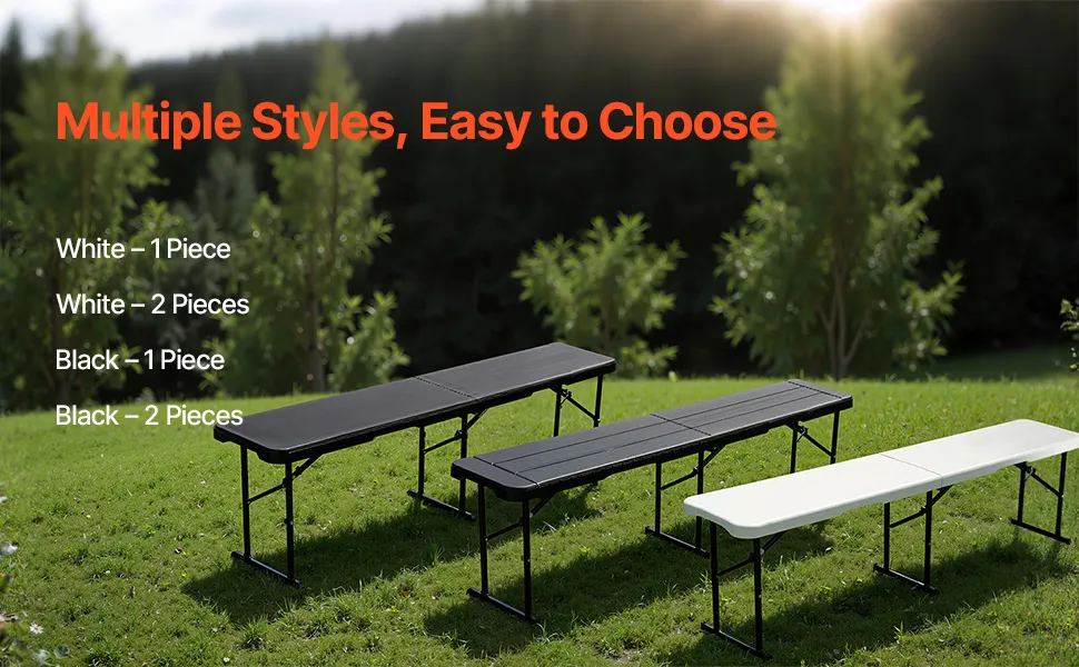 Asientos cómodos: este banco plegable de 1,82 m(72 x 11 x 17 pulgadas) de 1,82 m(1 pieza) y 1,83 m(6 pies) es muy portátil y liviano, y ofrece asientos cómodos sin necesidad de ensamblaje. Simplemente desempaquételo y úselo.