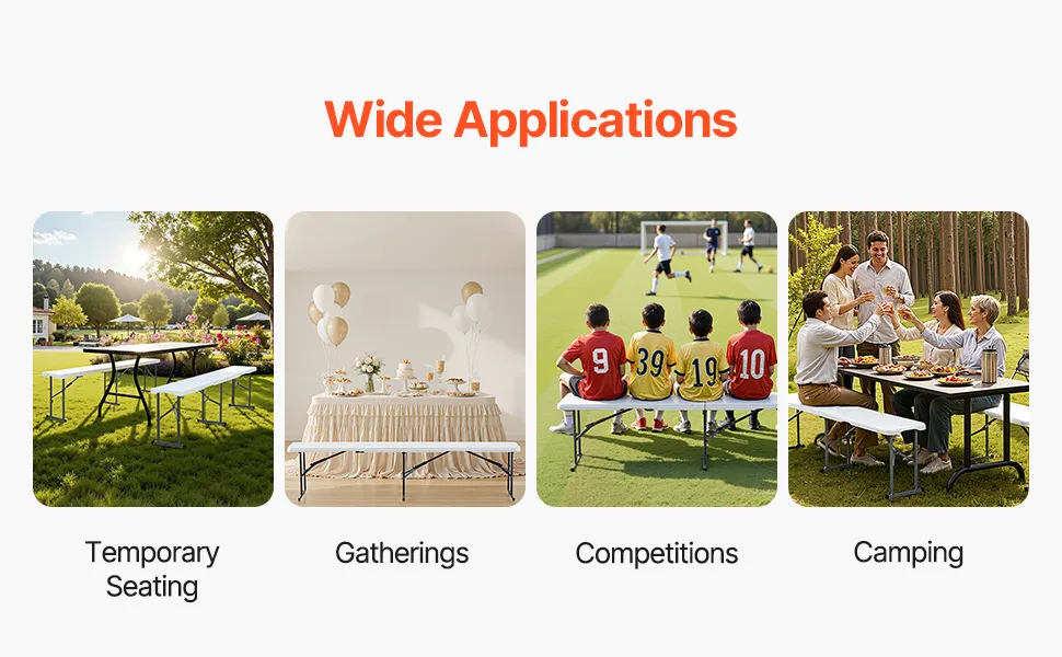 Este banco plegable de 1,83 m es muy portátil y liviano, y ofrece un asiento cómodo. No requiere ensamblaje; simplemente desempaquételo y úselo. Perfecto para eventos deportivos, fiestas, campamentos al aire libre o cualquier lugar donde necesite un asiento adicional.