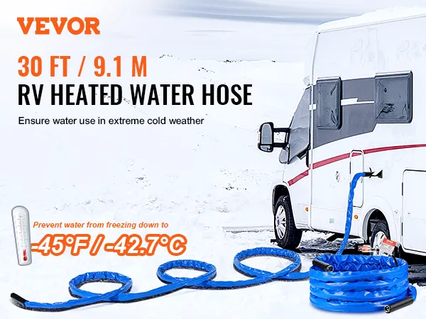 En las noches de invierno, en la mayoría de las regiones, las mangueras comunes se congelan debido a las bajas temperaturas. Con una manguera de agua calefactada VEVOR para autocaravanas, podrá disfrutar de un uso normal del agua incluso a -45 °F mientras acampa en autocaravana.