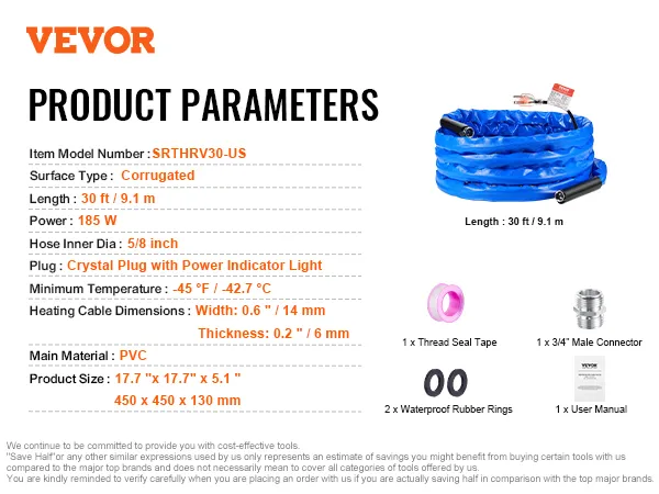 We prioritize preventing leaks at the heated water hose connectors. Equipped with waterproof rubber rings and thread seal tape, the connectors are easy to install and effectively prevent leaks.