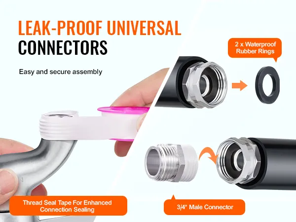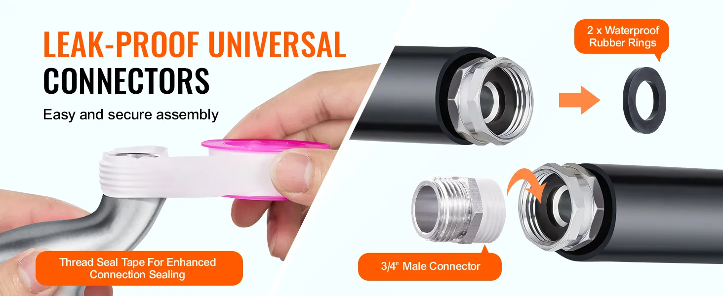 Leak-Proof Hose Connectors: Equipped with a 3/4" (1.9 cm) GHT aluminum connector, compatible with most US water sources. Fits garden and outdoor hoses, making it a versatile accessory. Includes waterproof rubber rings and thread seal tape for enhanced sealing.