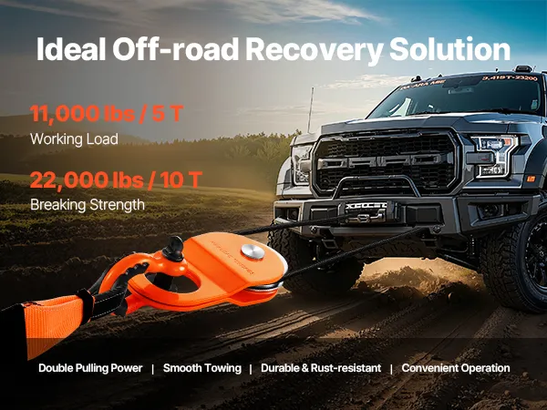 Esta polea de arrastre soporta una carga de trabajo de hasta 11 000 lb (5 T) y una resistencia a la rotura de 22 000 lb (10 T). Es ideal para tareas pesadas como la recuperación de vehículos y el transporte de árboles; realiza el trabajo con facilidad y eficiencia.