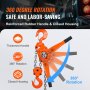 Sistema de frenos confiable: El diseño de freno de doble trinquete estilo Weston distribuye la carga a los lados opuestos de los engranajes para mejorar la seguridad de la carga. El gancho de aleación de acero de grado industrial puede girar 360° para facilitar el levantamiento.