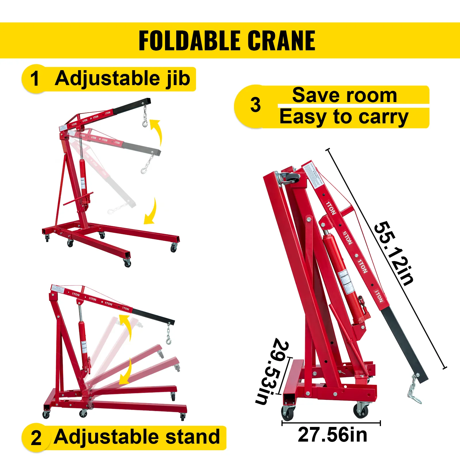 Adecuada para levantar cargas, esta grúa con motor hidráulico plegable y potente es imprescindible para talleres, almacenes, muelles y garajes.
