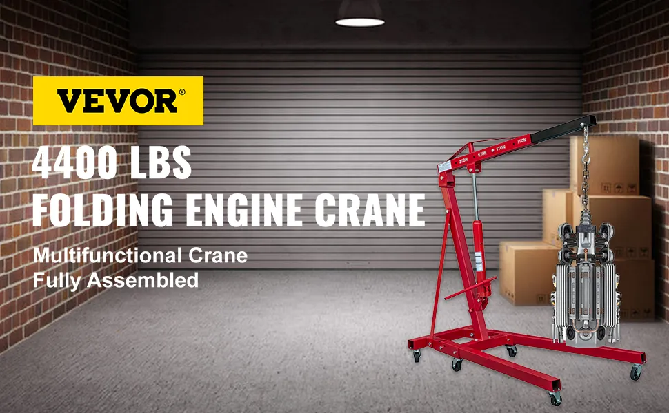 Adecuada para levantar cargas, esta grúa con motor hidráulico plegable y potente es imprescindible para talleres, almacenes, muelles y garajes.