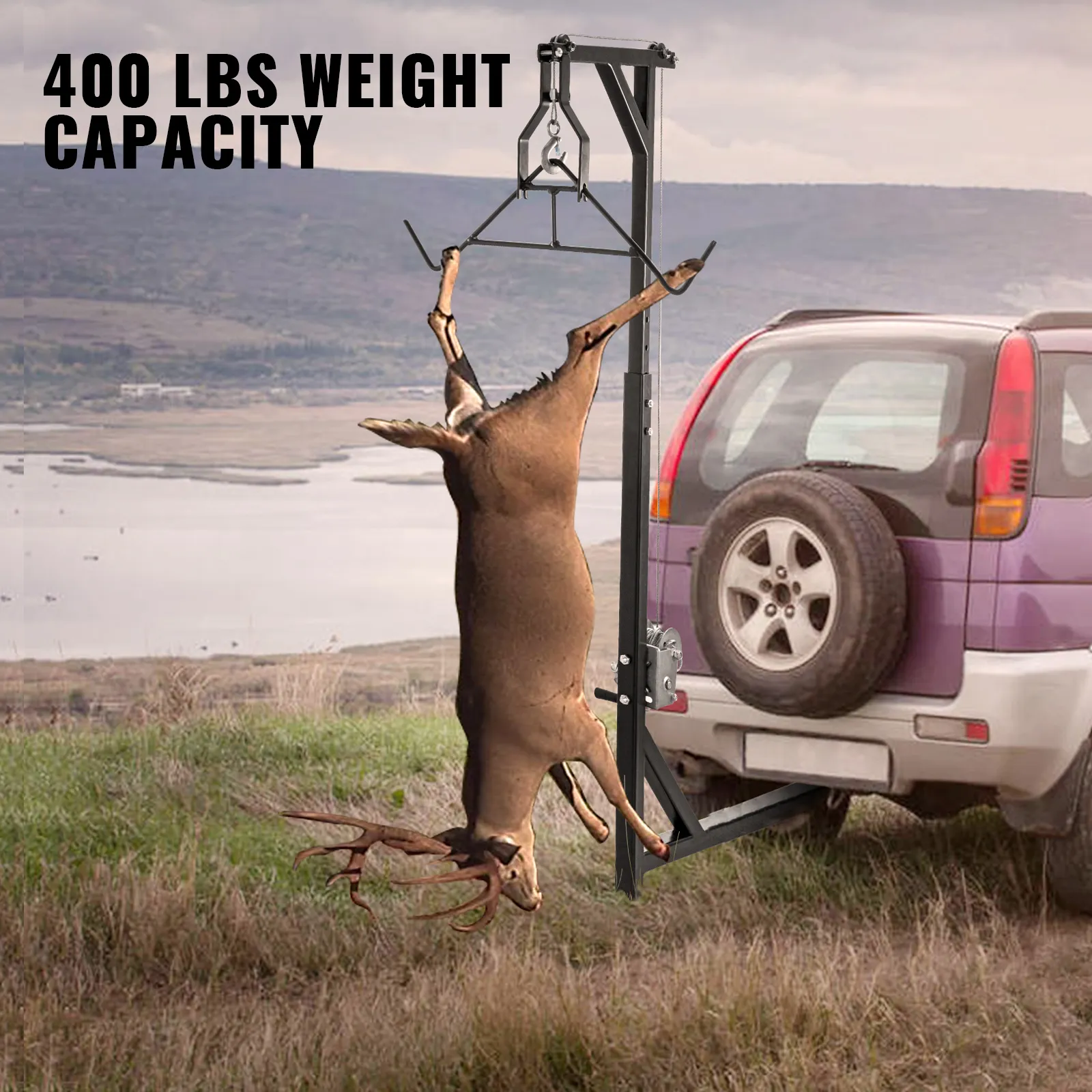 El Hitch Deer Hoist es perfecto para su caza al aire libre. La capacidad de peso de 400 libras facilita el manejo incluso de su juego más pesado. Este polipasto también viene con un gambrel y un cabrestante de alambre adecuado para limpiar, despellejar y cargar tipos de caza.