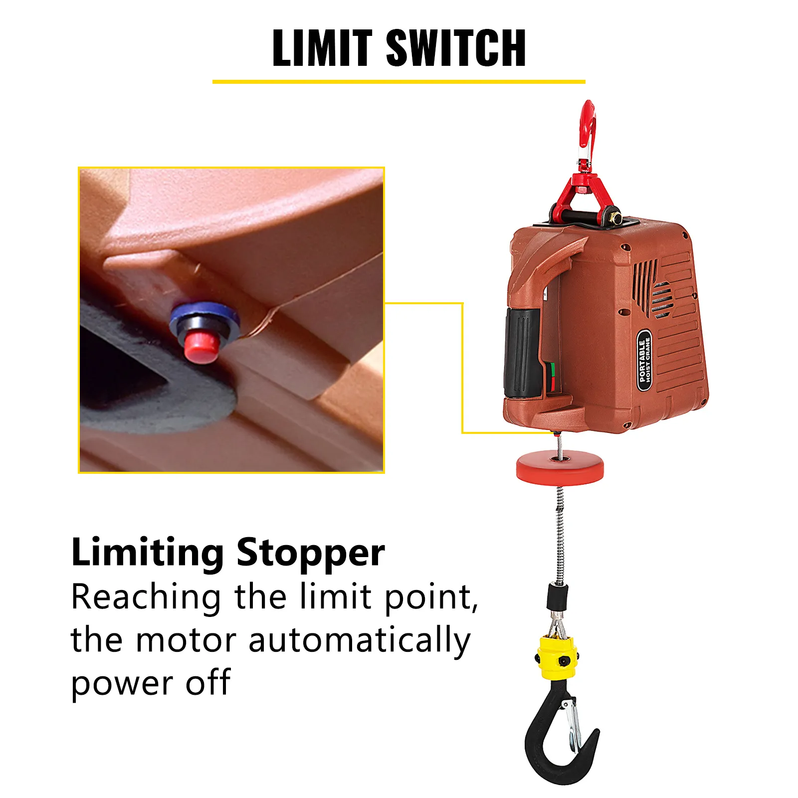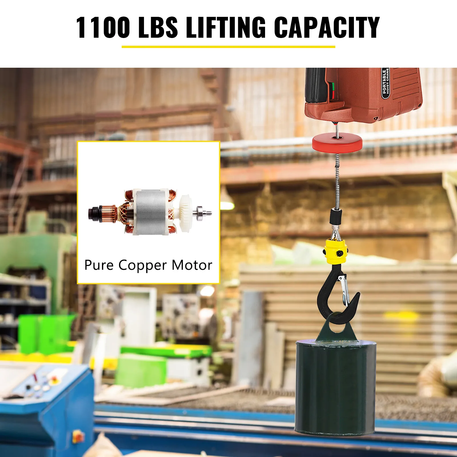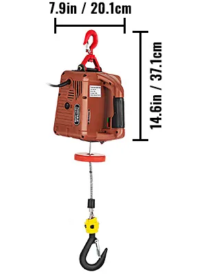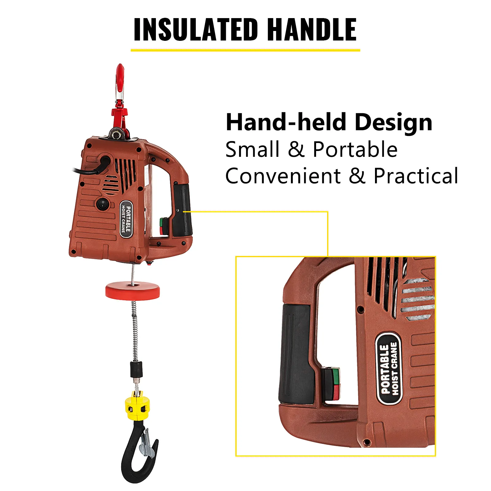 Aquí hay una lista sobre el polipasto eléctrico portátil. Con el gancho de aleación de acero, el motor completamente de cobre y la caja de engranajes de aluminio, su capacidad de carga máxima puede alcanzar los 500 kg. Es una herramienta de manejo de materiales ideal para maquinaria, industria, agricultura, pesca, reparación de automóviles, construcción y otros campos para levantar y mover aplicaciones pesadas.