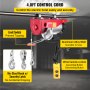 El control remoto con cable en este polipasto se logra a través de un interruptor de manija. La presión alcista sube, y por el contrario baja. El cable de alrededor de 4,8 pies/1,45 m de longitud le permite operar a cierta distancia.