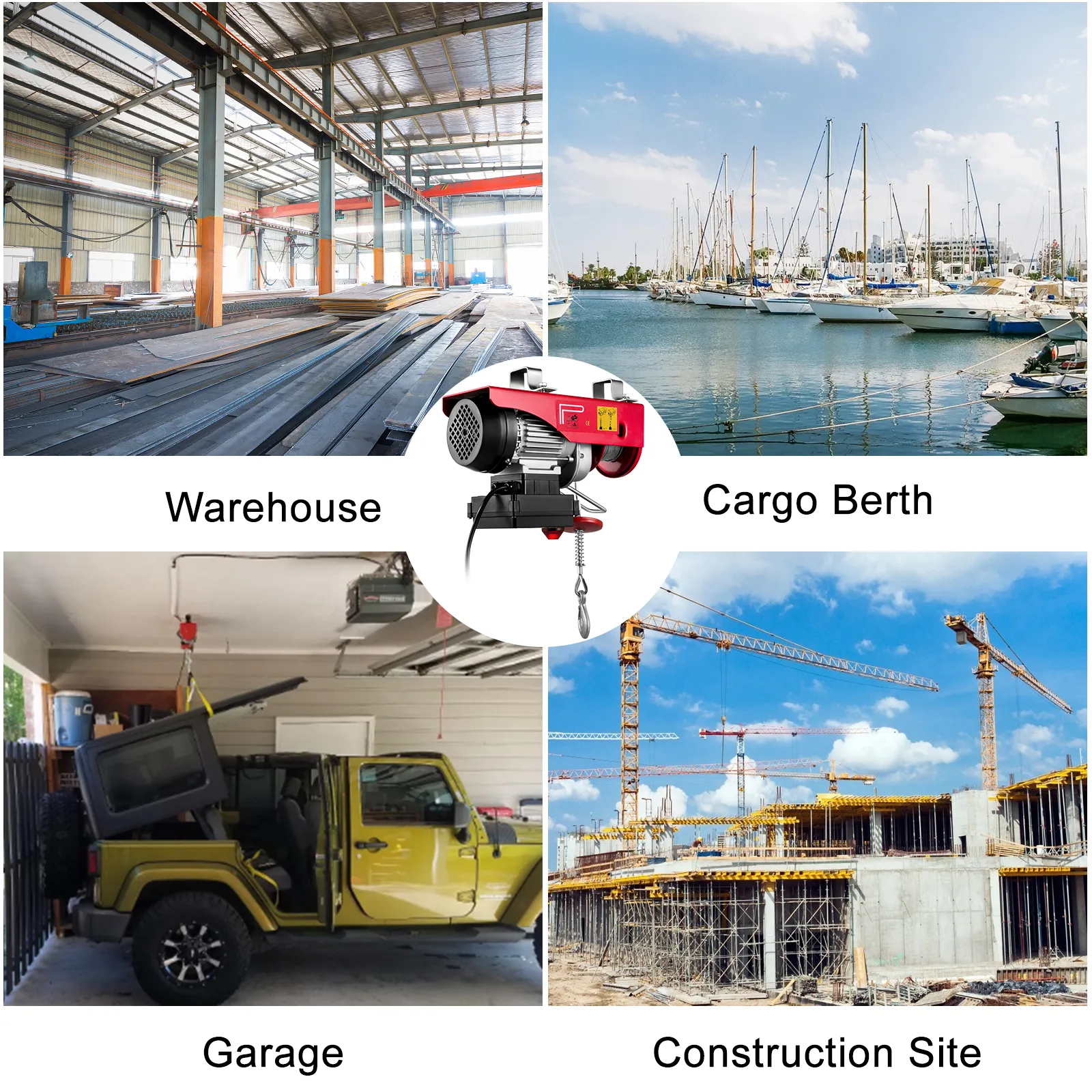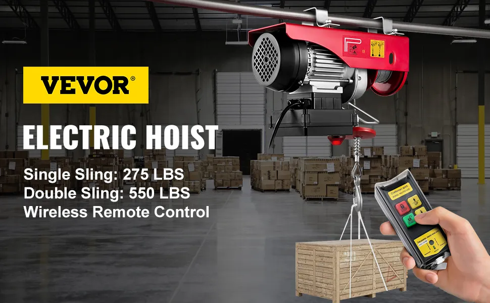 Este polipasto eléctrico, que cuenta con una capacidad de carga de 550 lbs/248 kg, es muy adecuado para levantar motores, mesas, madera y equipos de taller, sin necesidad de subir escaleras ni manivelas. Puede cargar y soltar a una distancia segura a través del control remoto inalámbrico. Este es un cabrestante eléctrico ideal para escenarios de gran alcance en la carga de equipos pesados.