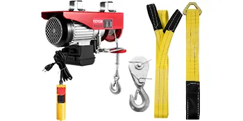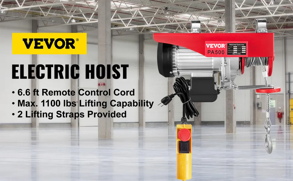 - Este polipasto eléctrico, que cuenta con una capacidad de carga de 1100 lbs/500 kg, es muy adecuado para levantar motores, mesas, madera y equipos de taller, sin necesidad de subir escaleras. Se puede usar para levantar cosas de forma regular o irregular como piedras, árboles, cortacésped, motor, etc. Puede cargar y soltar a una distancia segura a través del control remoto. Este es un cabrestante eléctrico ideal para escenarios de gran alcance en la carga de equipos pesados.