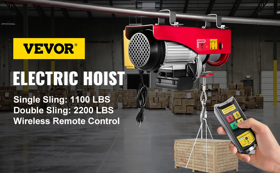 Este polipasto eléctrico, con una capacidad de carga de 2200 LBS (1000 kg), es muy adecuado para levantar motores, mesas, madera y equipos de taller, sin necesidad de subir escaleras ni manivelas. Puede cargar y soltar a una distancia segura a través del control remoto inalámbrico. Este es un cabrestante eléctrico ideal para escenarios de gran alcance en la carga de equipos pesados.