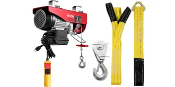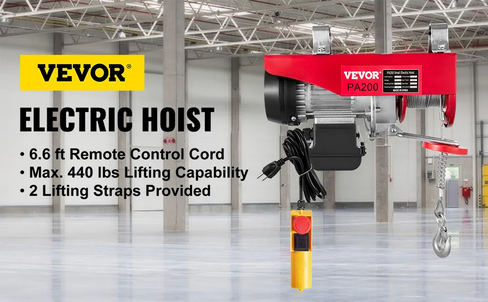 - Este polipasto eléctrico, con una capacidad de carga de 440 lbs/200 kg, es muy adecuado para levantar motores, mesas, madera y equipos de taller, sin necesidad de subir escaleras. Se puede usar para levantar cosas de forma regular o irregular como piedras, árboles, cortacésped, motor, etc. Puede cargar y soltar a una distancia segura a través del control remoto. Este es un cabrestante eléctrico ideal para escenarios de gran alcance en la carga de equipos pesados.