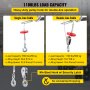 - Velocidad de elevación: 32,8 pies/min/10 m/min, 16,4 pies/min/5 m/min