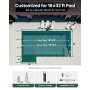 La cubierta para piscina de 18 x 34 pies está diseñada con un escalón izquierdo de 4 x 8 pies, que se adapta a una piscina de 16 x 32 pies. Además, el tamaño de la cubierta es 2 pies más grande que el tamaño de la piscina, lo que puede cubrir la piscina de manera perfecta y hermética con facilidad.