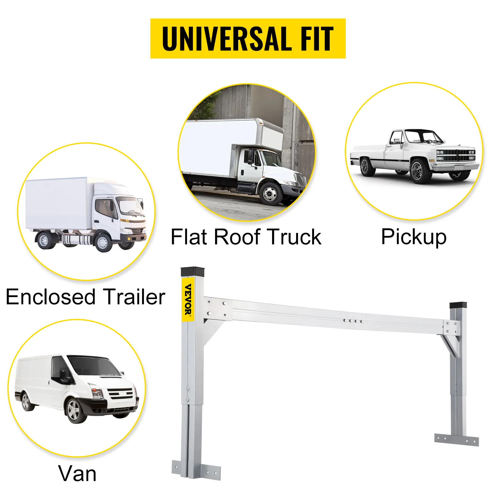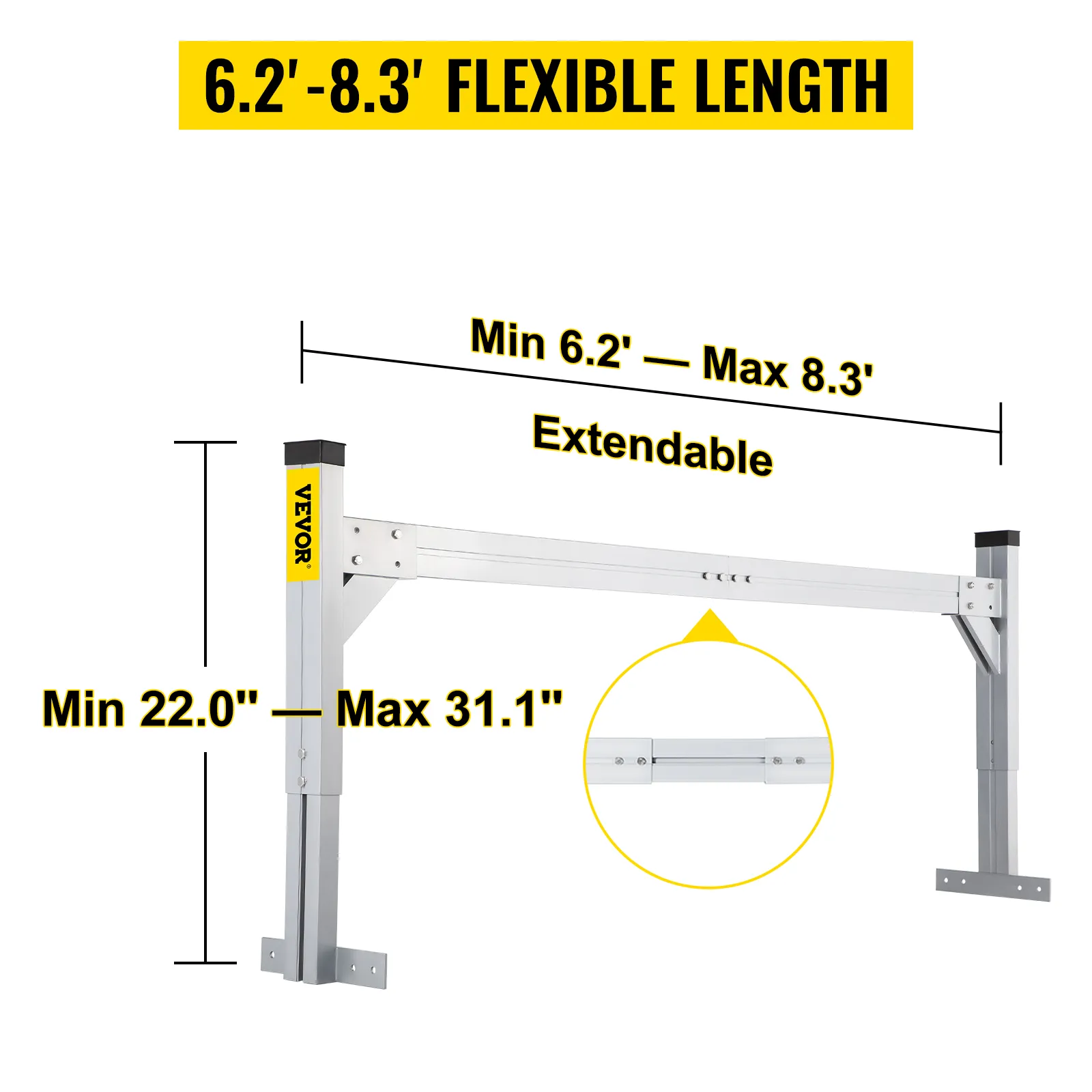 Diseño ajustable: altura ajustable: 22,0-31,1 in/56-79 cm. Longitud extensible: 6,2-8,3 pies/190-256 cm. Nuestro portaescaleras para furgoneta está diseñado para adaptarse a una variedad de tamaños de caja de camión.