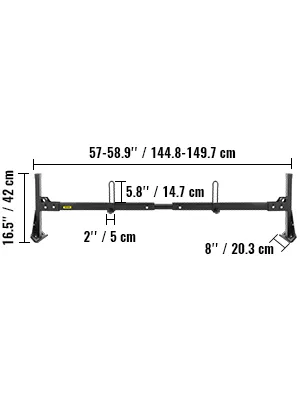 Diseño ajustable: Longitud ajustable: 56-57 in/1422-1448 mm. Base vertical de montaje de 8" de ancho. Nuestro portaescaleras para furgonetas está diseñado para adaptarse a diferentes tamaños de furgonetas y combinar perfectamente con los vehículos.