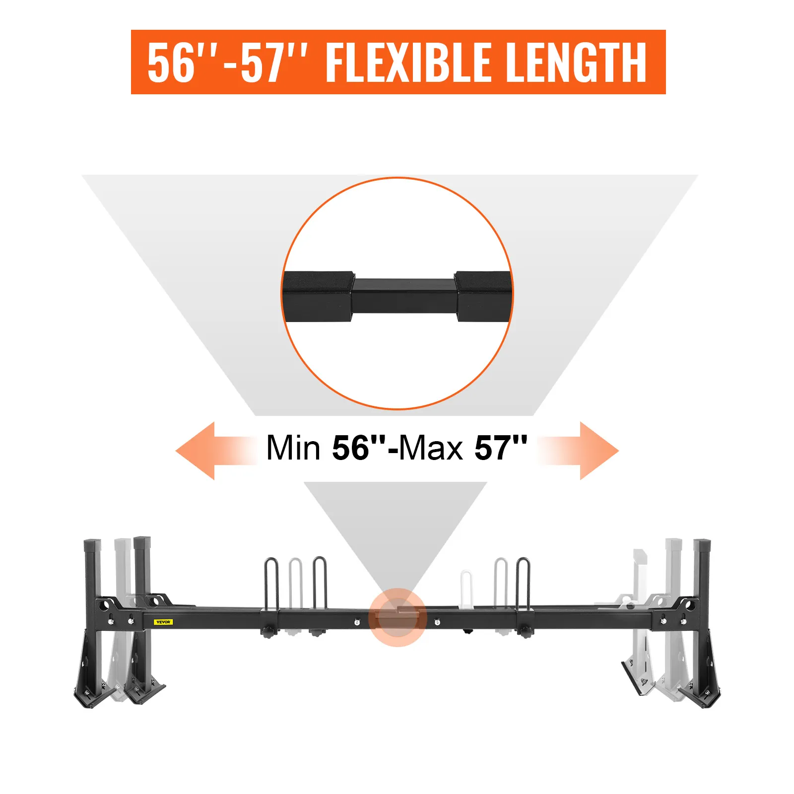 Longitud ajustable: 56''-57''/1422-1448 mm. Este portaequipajes para furgonetas está bien equipado para transportar artículos de gran tamaño que no caben en su interior.