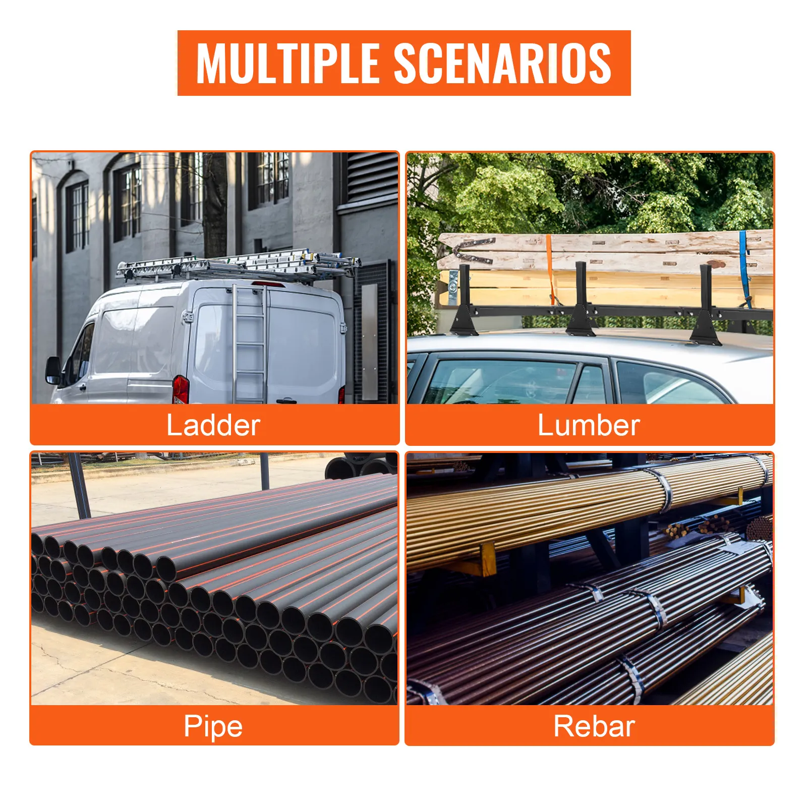 Uso múltiple: la baca ayuda a asegurar que las pertenencias no se deslicen, es perfecta para escaleras, madera, tuberías, equipos para piscinas y otros materiales largos. Los asientos de goma ayudan a evitar rozaduras en los rieles de goteo del vehículo durante el uso.