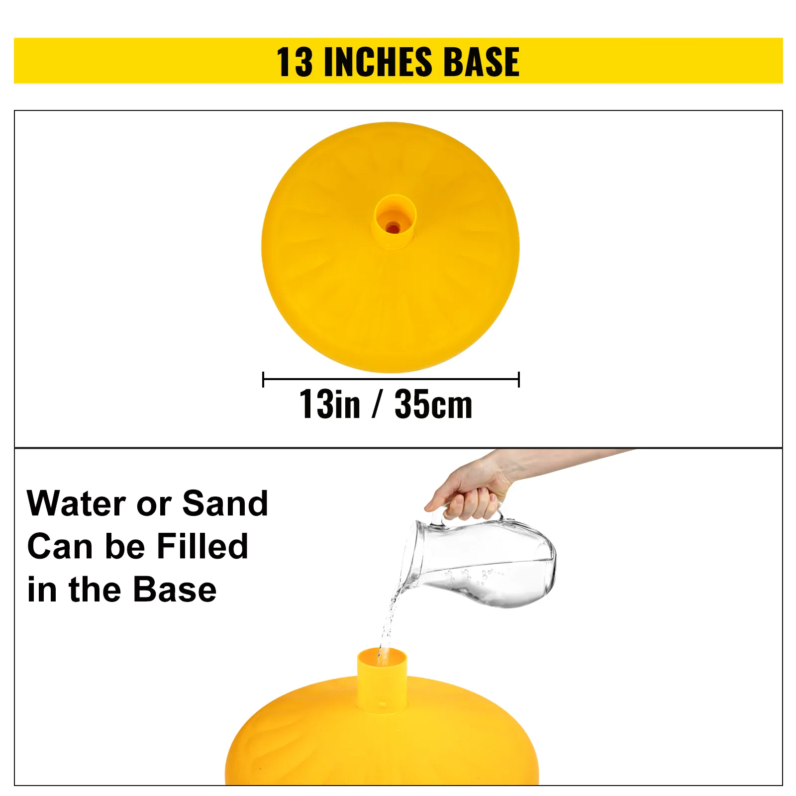 El poste de plástico se puede llenar con agua o arena en la base. El tamaño de la base aumentada alcanza los 33 cm. Se puede llenar con más agua o arena, lo que hace que el poste sea más estable.