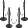 Los componentes de las barreras de aparcamiento son solo 4 partes. Cada poste tiene una cadena de 39 pulgadas de largo, y puede colocar los postes en una línea o en un círculo según su necesario.