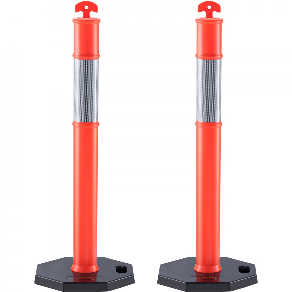 VEVOR Traffic Delineator Post Cones, 2 Pack, Traffic Safety Delineator Barrier with 16.93 x 16.93 in Rubber Base, for Traffic Control Warning Outdoor Indoor Use Parking Lot Construction Caution Roads