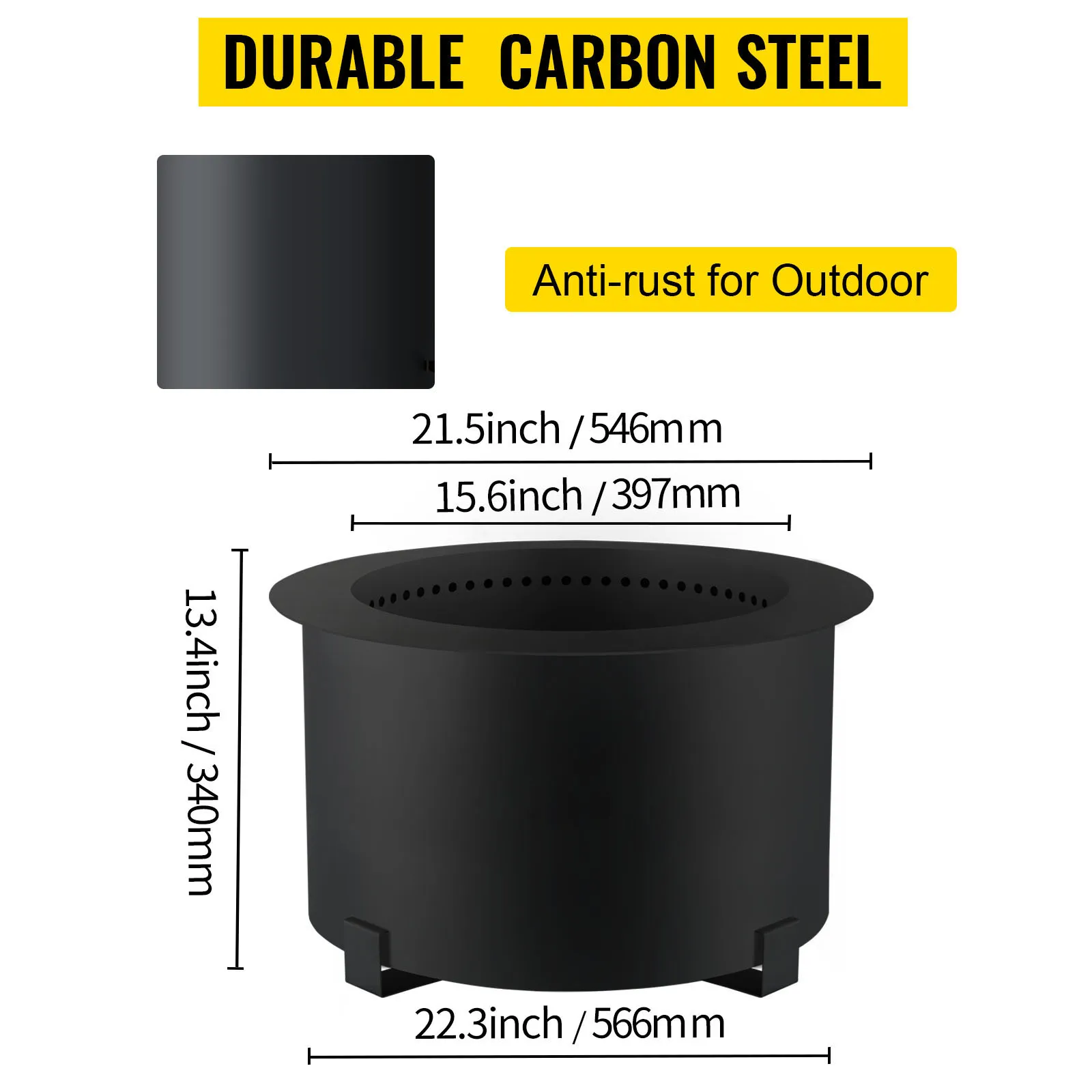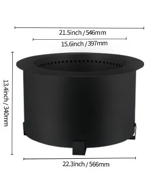 El tamaño de la hoguera es: 21,5" (diámetro) x 13,4" (altura), el diámetro interno es: 15,6", peso bruto: 34,6 lbs. El impresionante brasero de leña adopta acero al carbono de alta resistencia, lo que le permite resiste los rigores del uso constante y al mismo tiempo facilita la limpieza.