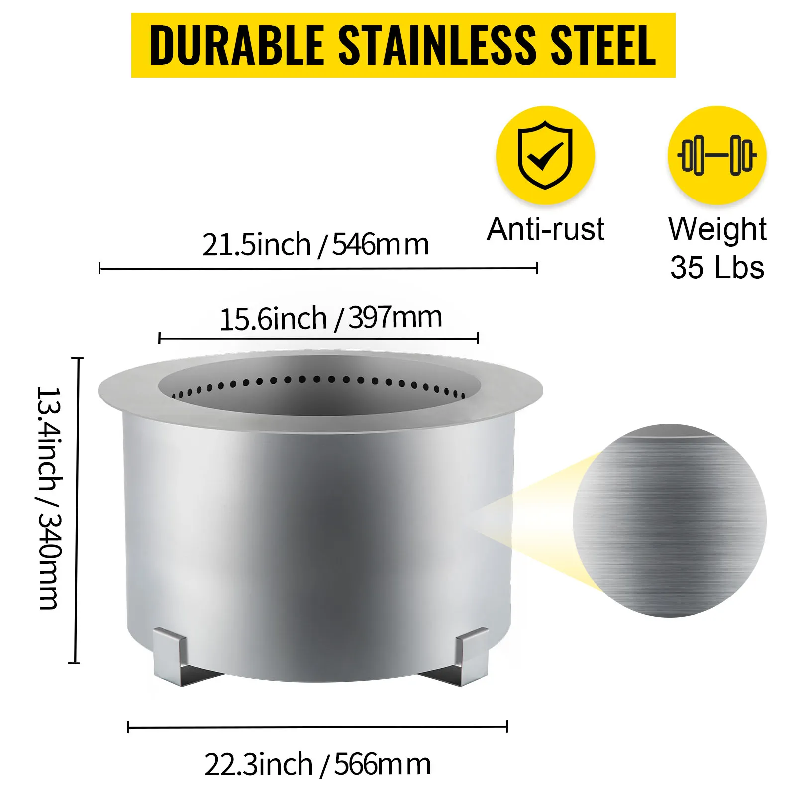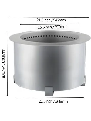 El tamaño de la hoguera es: 21,5" (diámetro) x 13,4" (altura), el diámetro interno es: 15,9", peso bruto: 35 lbs. El impresionante brasero de leña adopta acero al carbono de alta resistencia, lo que le permite resiste los rigores del uso constante y al mismo tiempo facilita la limpieza.