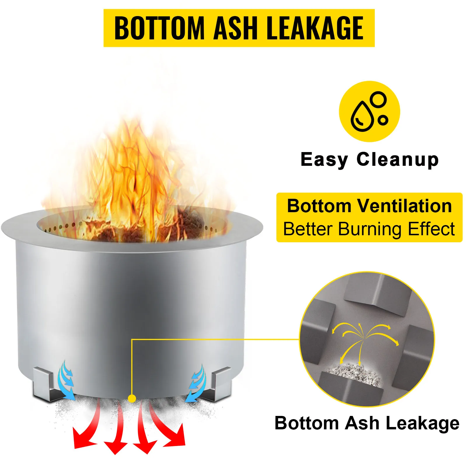 Hay 4 rejillas de ventilación en la parte inferior para proporcionar un lugar para filtrar las cenizas para que pueda disfrutar de estos pozos de fuego portátiles de acero al carbono sin la molestia del humo y las cenizas sobre usted.